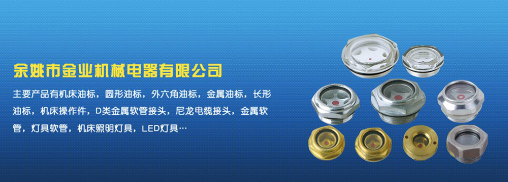 余姚市金業機械電器有限公司主要產品有機床油杯,圓形油標,外六角油標,金屬油標,長形油標,機床操作件,D類金屬軟管接頭,尼龍電纜接頭,金屬軟管,燈具軟管,機床照明燈具,LED燈具,DGT型線路軟管防護套,TL型鋼制電纜手軌,電纜尼龍拖鏈,可調塑鋼冷卻管等產品,規格齊全,全部自制。望國內外客戶前來考察:共同發展…